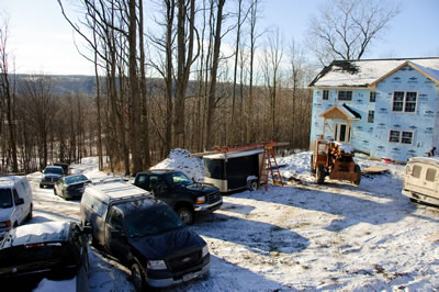 While that was going on, the Electricians where there, pulling their wires, and the HVAC people were there running their ductwork. Mike was doing the plumbing too. Lots going on!