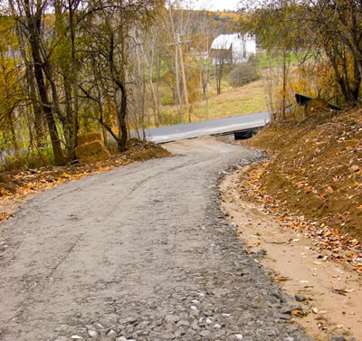 The driveway work resumed on the Ridge today, and almost immediately stopped because of rain. A little was accomplished though. Monday through Wednesday of next week promise good weather, so I would bet that Mike will be workin' the trucks hard! :-)