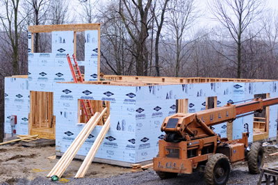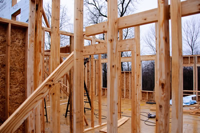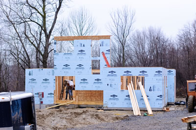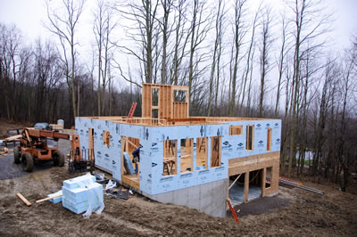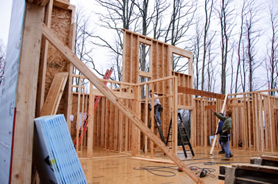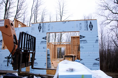 The house went from one big framed-up room to many little rooms, as the framers did their work on the main floor. I still have no idea how they stood up that tall front wall... But it's nice to start to get a feel for sightlines from room to room, as well as see how accurate my original 3D renderings were (or not!)