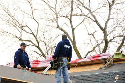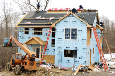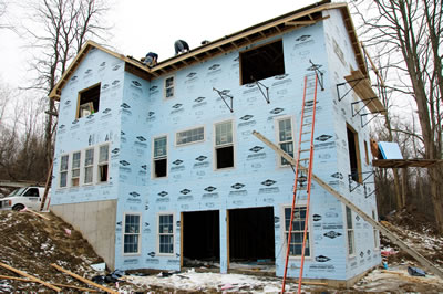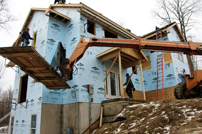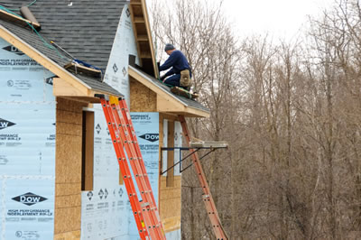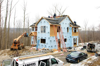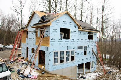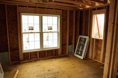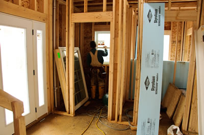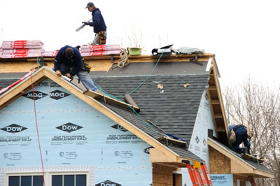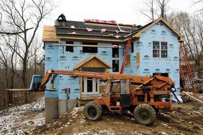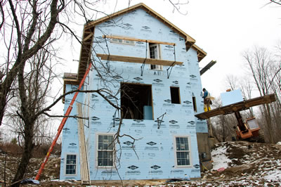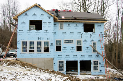 Today they continued on getting the windows installed, and since there was a lull in the weather the roofers arrived to get the roof nailed on. I definitely didn't envy them - putting the roof on in the cold! But they didn't seem to mind...