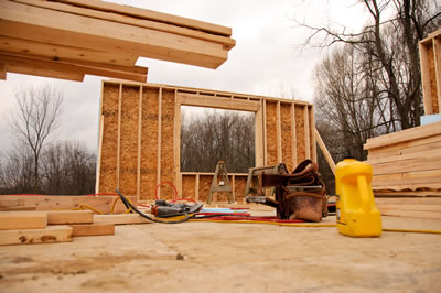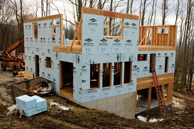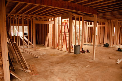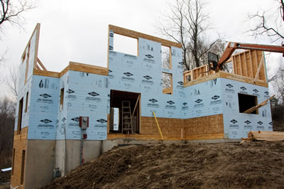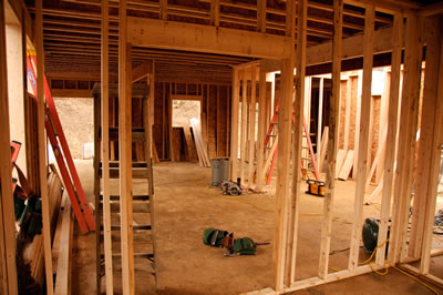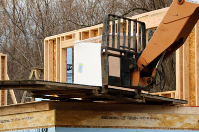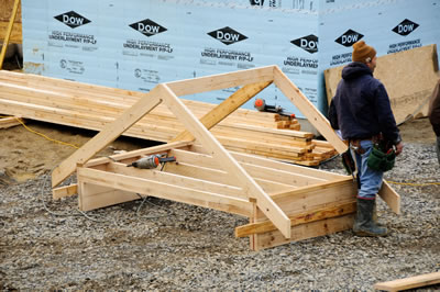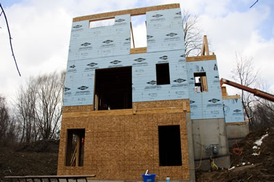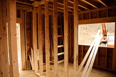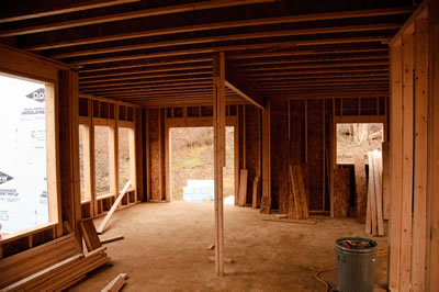 LOTS of progress today! Holy rafters, batman! :-) Many of the walls for the upstairs are now in place! The main level is opening up now that they have removed the braces crisscrossing the area. It's looking like a house!