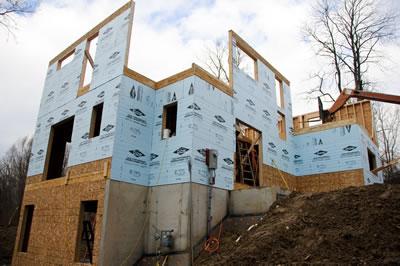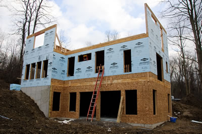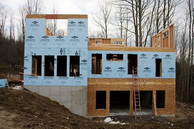I know it's normal, but it's still funny to see a tub/shower unit sitting in a half-finished house!