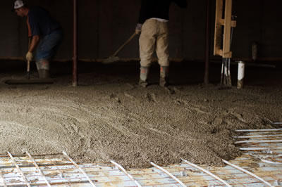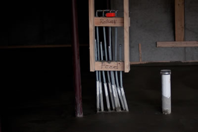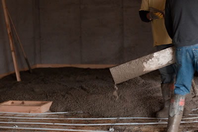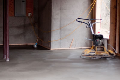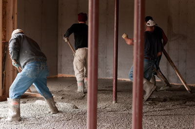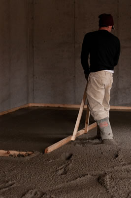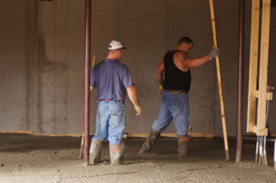 Because the framers framed up the floors so precisely, the concrete workers were able to just use a 2X4 cut to the proper length to set the "height" of the floor. If the board cuts a trough, the floor needs to be smoothed down. if it doesn't make a mark at all, the floor needs to be built up. Pretty cool!