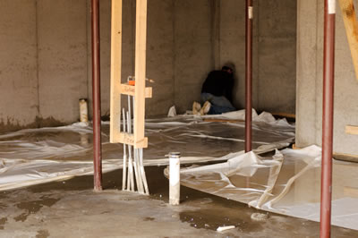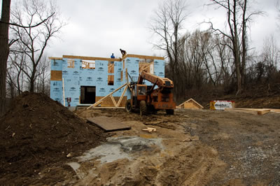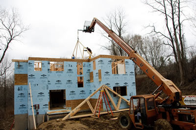 Today the framers started the roof, while Mike and co. worked on pulling the forms out along the wall in the basement...