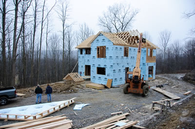 Apparently the building convention around here is to do just 12" overhangs for the roof. I'm glad we opted to make those 24" overhangs. I think it looks just about right.
