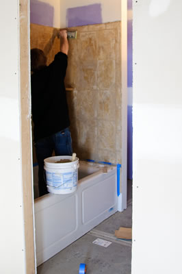 While all of this was going on, Mike's tile guys put the tile surround on our tub. It is looking fabulous!