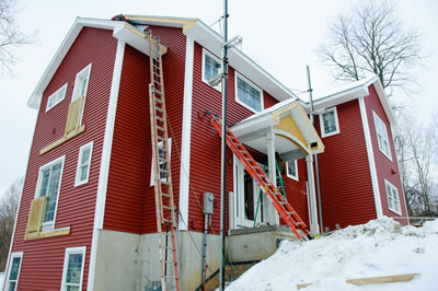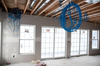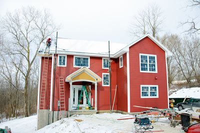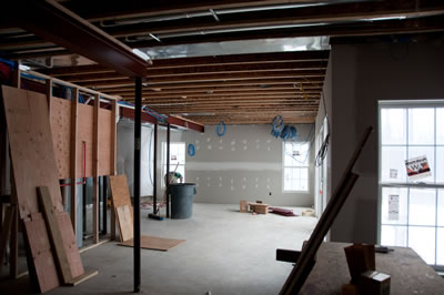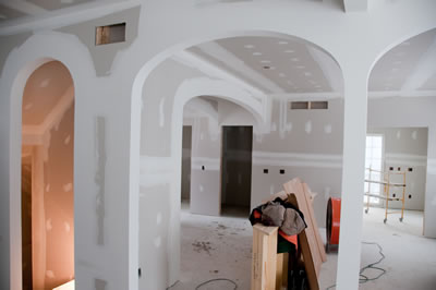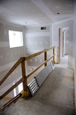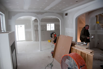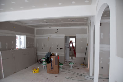 So they finished the siding today, and it looks awesome! The drywallers are all done hanging the drywall, and the maestro is currently applying the spackle (or mud or whatever you call it) to the drywall to make everything even. I did that myself on our renovation on our last house, and doing it with the quality that this gentleman is doing is nothing short of magic. The arches look awesome, and it's all just soo exciting!