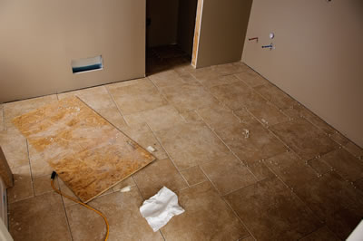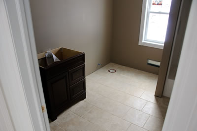 Tim and I have been working on the tile floors, for which Tim gets most of the credit as he works much faster than I do. I ended up cutting most of the tile to fit, while Tim was putting it all down.