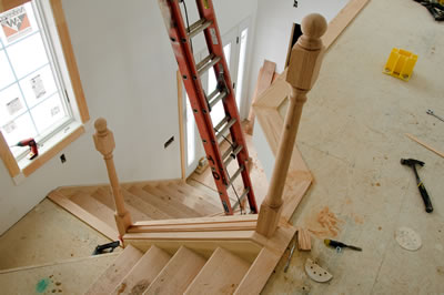 So this week has been all about tile floors, wood floors, trim, and painting. The cabinet folks have the countertop on the way, Larry the carpet guy was out to measure and the carpet is ordered, Ryan the painter is working on the painting, and Scott the painter/trimmer did the upstairs trim and is now laboring away on the stairs. I just marvel at the work that Wallman Homes' Contractors do! They are all such nice people and so helpful and do such great work!