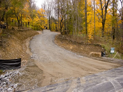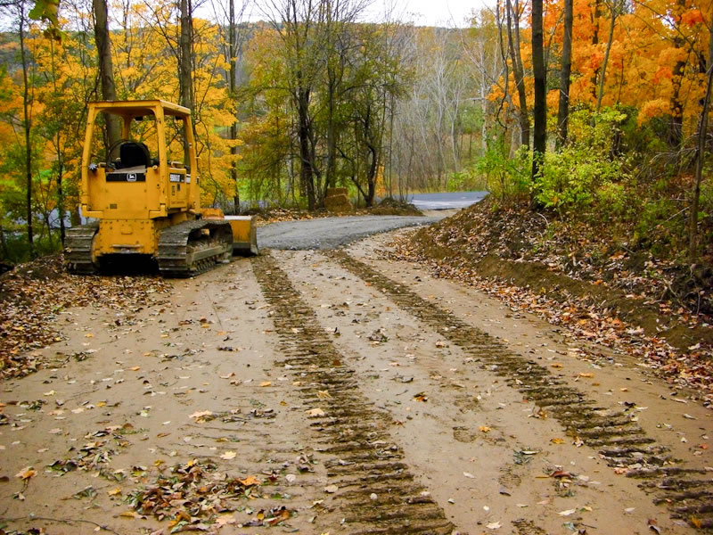 The driveway work resumed on the Ridge today, and almost immediately stopped because of rain. A little was accomplished though. Monday through Wednesday of next week promise good weather, so I would bet that Mike will be workin' the trucks hard! :-)