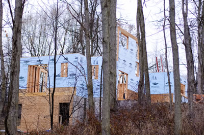 The house went from one big framed-up room to many little rooms, as the framers did their work on the main floor. I still have no idea how they stood up that tall front wall... But it's nice to start to get a feel for sightlines from room to room, as well as see how accurate my original 3D renderings were (or not!)