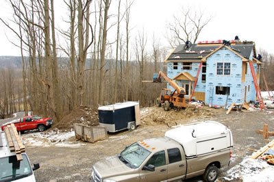 Today they continued on getting the windows installed, and since there was a lull in the weather the roofers arrived to get the roof nailed on. I definitely didn't envy them - putting the roof on in the cold! But they didn't seem to mind...
