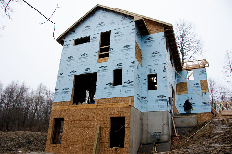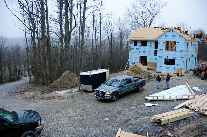 Apparently the building convention around here is to do just 12" overhangs for the roof. I'm glad we opted to make those 24" overhangs. I think it looks just about right.